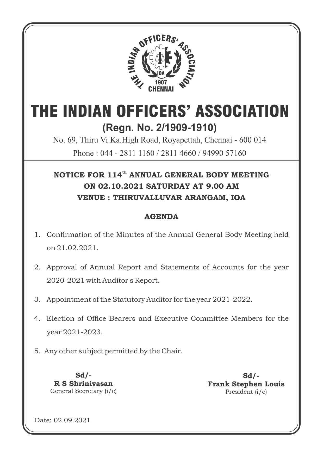 The Indian Officers' AssociationThe Indian Officers' AssociationThe Indian Officers' Association